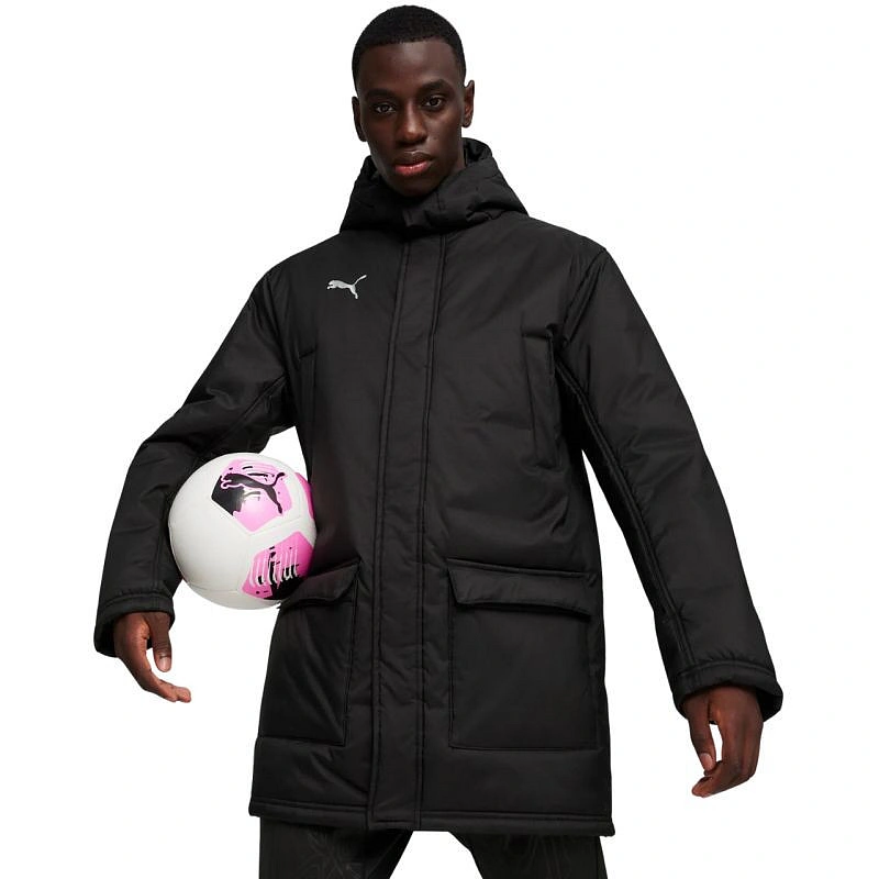 Pánská zimní bunda Puma Team Final černá 658569 03. Tato pánská bunda Puma vás v zimních měsících dobře ochrání před chladem. Zapínání na zip po celé délce. Syntetická výplň. Více kapes. Přiléhavý střih. Neodnímatelná kapuce bez možnosti regulace. Malé logo. Technické specifikace:- Materiál: 100% polyester- Výplň: 100% polyester- Podšívka: 100% polyester.