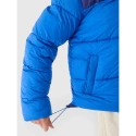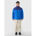 Kurtka puchowa 4F męska z puchem syntetycznym, który jest trwalszy i łatwiejszy w utrzymaniu niż puch naturalny. Nawet przy kontakcie z wilgocią, zachowuje swoje właściwości izolacyjne przez dłuższy czas oraz o wiele szybciej schnie. Dodatkowo nie wymaga skomplikowanego procesu prania i suszenia.Hydrofobowa powłoka impregnacyjna pokrywa zewnętrzną warstwę materiału i zabezpiecza ją przed wchłonięciem wody. Powłoka sprawia, że wilgoć skrapla się na powierzchni tkaniny lub dzianiny, po czym swobodnie po niej spływa. Szyję osłania niska stójka. Rękawy z mankietami zakończonymi elastyczną gumą. Po bokach znajdują się 2 kieszenie otwarte. Natomiast w środku znajduje się kieszeń z zapięciem na zamek, która pozwala na bezpieczny transport cennych przedmiotów, np. telefonu. Kurtka puchowa dla mężczyzny jest zapinana na jednokierunkowy zamek główny z wewnętrzną plisą przeciwwiatrową, która ogranicza przenikanie chłodu do wnętrza kurtki. Obwód dołu można wyregulować