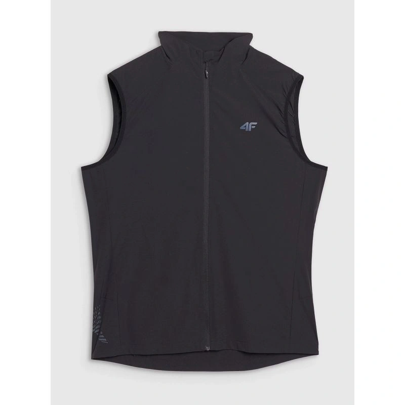 pánská běžecká vesta 4F je funkční svrchní vrstva pro trénink v teplejších dnech. Úzký střih přiléhá k tělu, zatímco klasická délka přes boky neomezuje pohyb při běhu v přírodě.