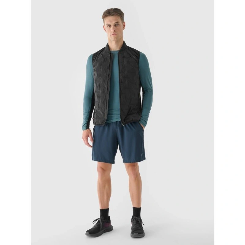 bezrękawnik do biegania męski 4F to ultralekka warstwa zewnętrzna zaprojektowana z myślą o bieganiu i treningach w cieplejsze dni, gdy liczy się ochrona bez obciążenia. Dopasowany krój slim oraz standardowa długość do bioder zapewniają aerodynamiczne ułożenie na sylwetce i pełną swobodę ruchów. Oddychający materiał z impregnacją skutecznie odprowadza wilgoć i ogranicza przegrzewanie, jednocześnie chroniąc przed nagłym załamaniem pogody. Zastosowana izolacja PrimaLoft® Silver oferuje wysoki komfort cieplny przy minimalnej wadze, zachowując swoje właściwości nawet w wilgotnych warunkach. Szybkoschnące wykończenie w technologii 4FDry wspiera utrzymanie suchości podczas intensywnego wysiłku, a ekologiczna powłoka Bionic Finish® Eco (bez PFC) zwiększa odporność na wodę i zabrudzenia, nie ograniczając oddychalności. Praktyczne detale – zapinane kieszenie, elementy odblaskowe oraz możliwość spakowania bezrękawnika do wewnętrznej kieszeni – spra