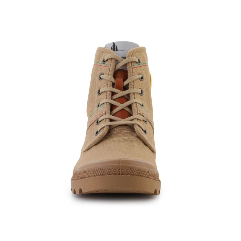 - Jako zvláštní odkaz na dědictví má model Pallabrousse Legacy hrubý svršek z bavlněného plátna, smíšený s kontrastním prošíváním a koženým jazykem, který evokuje barvy legie.