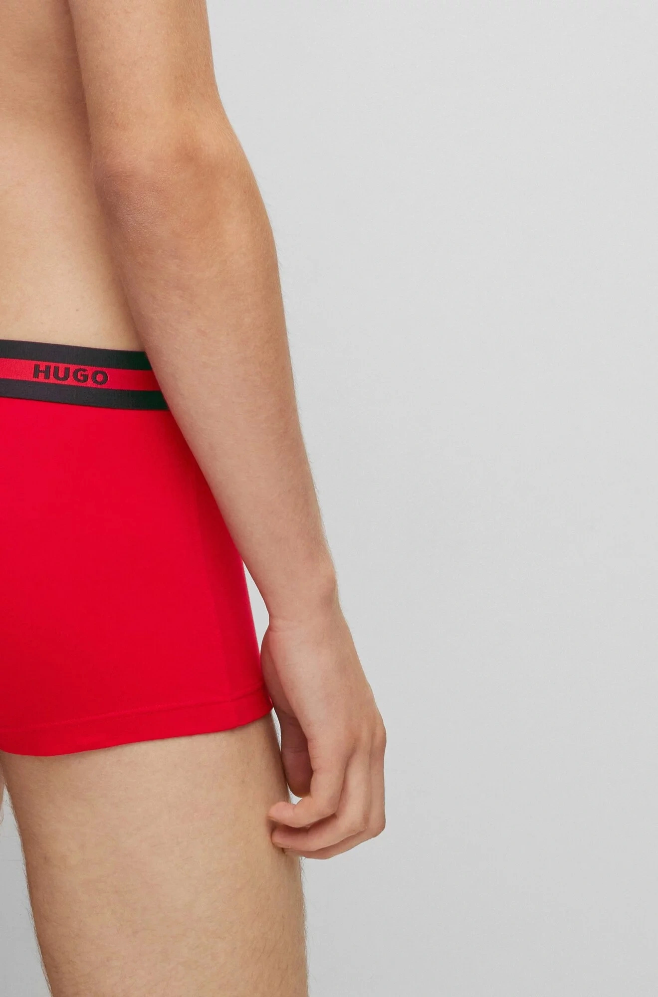 - odhalený pas je ozdoben logy HUGO na červeném proužku, který dodává značce DNA.