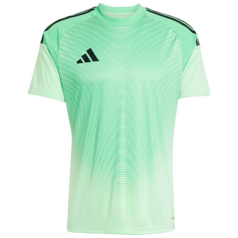 Pánský soutěžní dres adidas Tiro 25 s krátkým rukávem zelený JI9716 Pánské brankářské tričko adidas vám umožní soustředit se výhradně na zápas. Systém Aeroready udrží vaši pokožku v suchu. Přizpůsobený střih s žebrovaným výstřihem. Krátké raglánové rukávy. Pruhovaná ramena a vyšité logo adidas na hrudi. Materiál: 100% polyester.