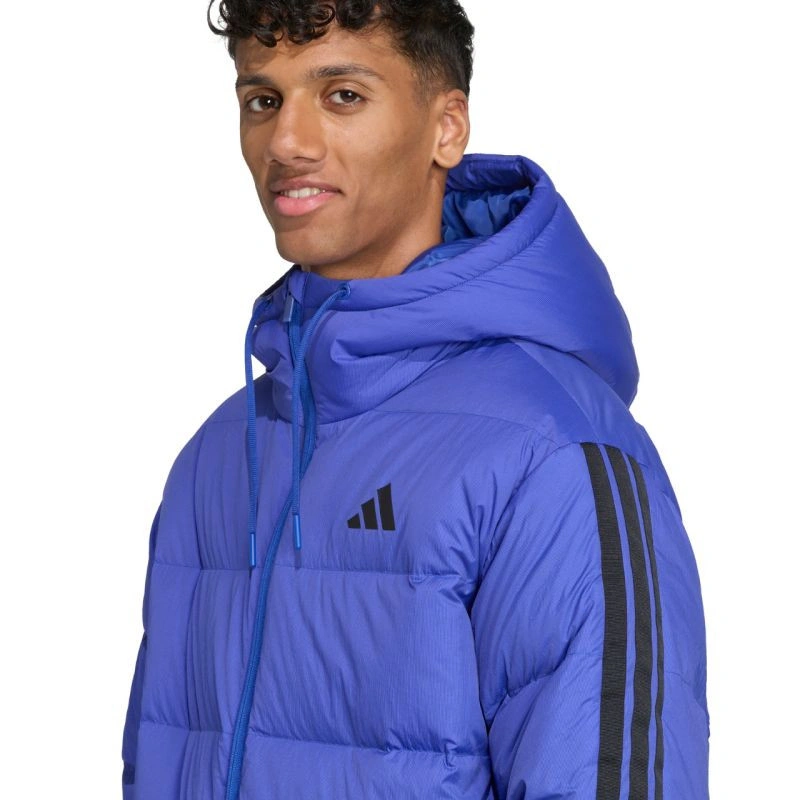 Pánská bunda adidas Ess 3S P D HD J cobalt JW9099 Pánská bunda adidas poskytuje vysokou úroveň izolace proti chladu. Výplň z prachového peří a peří. Tkanina s povrchovou úpravou DWR snižuje absorpci vlhkosti. Volný střih. Zip po celé délce. Boční kapsy s druky. Kapuce nastavitelná pomocí stahovací šňůrky. Zvýšený límec. Elastické manžety a spodní lem. Technologie Climawarm. Technické specifikace:- Hlavní tkanina: 100% recyklovaný polyamid- Podšívka: 100% recyklovaný polyester- Výplň: 80% kachní peří, 20% peří, 600 skákavost.