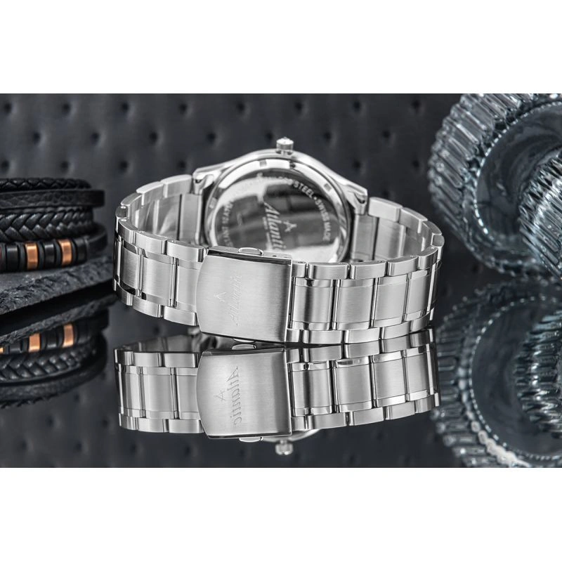 Náramek hodinek Atlantic je dokonalou kombinací elegance a odolnosti - je vyroben z vysoce kvalitní ušlechtilé oceli a zaujme svým jemným a nadčasovým charakterem. Jeho přesné články byly navrženy tak, aby dokonale padly na zápěstí a zajistily nejen estetiku, ale také plný komfort nošení po celý den. Pevná spona zaručuje bezpečnost a jistotu v každé situaci, zatímco rafinovaná povrchová úprava dodává nádech klasické elegance. Je to náramek, který nejen podtrhuje prestiž hodinek, ale stává se výrazným prvkem vašeho stylu - ať už se jedná o jakoukoli příležitost.