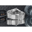 Pánské pouzdro o velikosti 41 mm je prvkem, který dodává hodinkám jedinečný charakter a podtrhuje jejich moderní, mužný styl. Pevně zkonstruované z nerezové oceli bylo anatomicky navrženo tak, aby se přizpůsobilo zápěstí a zaručilo pohodlí i při celodenním nošení. Výrazná velikost 41 mm přitahuje pozornost a činí z hodinek výrazný akcent jakéhokoli stylu, ať už elegantního, nebo ležérního. Trvanlivost a odolnost pouzdra je nejen estetická, ale poskytuje také spolehlivou ochranu přesnému quartzovému strojku uvnitř. Kombinace funkčnosti, elegance a robustnosti činí z těchto hodinek jistou volbu pro muže, který oceňuje kvalitu a třídu v každém detailu, ale zároveň chce vyniknout originálním, rozhodným stylem.