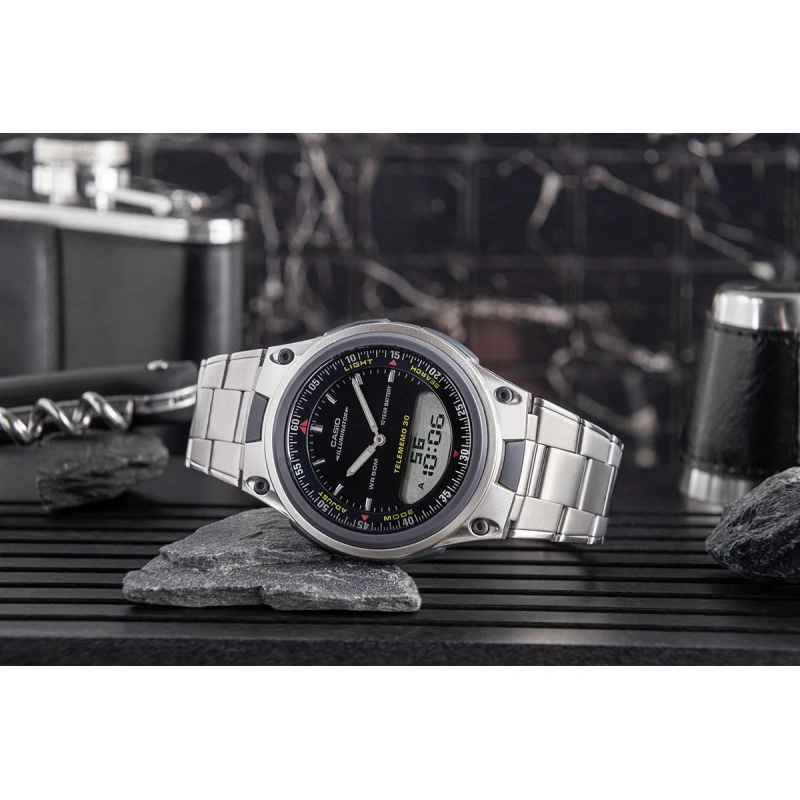 Hodinky Casio AW-80D-1AVDF nabízejí funkce, jako je duální displej (analogový a digitální), Telememo 30 pro ukládání kontaktů, budíky, stopky, časovač a možnost sledovat čas ve 30 časových pásmech. Kromě toho mají vodotěsnost WR50M, životnost baterie až 10 let a podsvícení Illuminator pro čtení ve tmě.