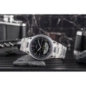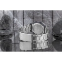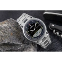 Náramek je vyroben z vysoce kvalitní nerezové oceli s dvojím typem povrchové úpravy: matnou uprostřed a kartáčovanými okraji, což dodává hodinkám jedinečný vzhled. Nerezová ocel je materiál odolný vůči mechanickému poškození, což znamená, že náramek dobře odolává každodennímu používání a dlouho si zachovává svůj estetický vzhled. Hodinky jsou vybaveny speciální sponou, která umožňuje upravovat délku náramku bez nutnosti vyjmutí článků. Náramek má robustní, zacvakávací sponu, která zabraňuje náhodnému rozepnutí hodinek, což je důležité zejména při aktivních situacích nebo intenzivnějších pohybech ruky.