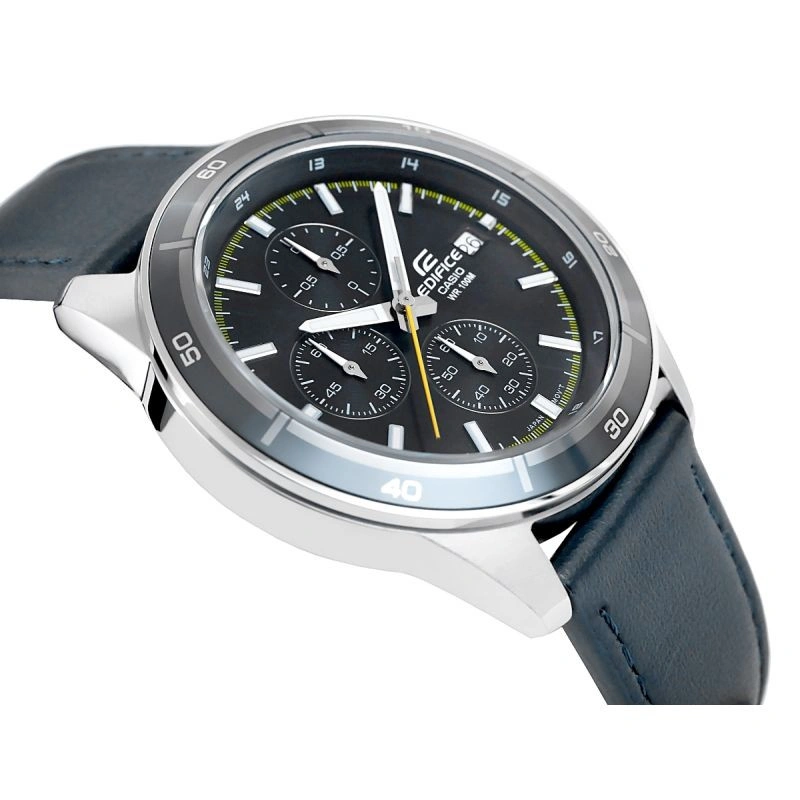 Vyberte si dokonalou kombinaci stylu a funkčnosti s klasickým chronografem EDIFICE střední velikosti. Řemínek z pravé kůže dokonale ladí s tmavě šedým ciferníkem, inspirovaným městským dynamickým stylem. Model je vybaven funkcí data dne v měsíci a chronografy: stopky 1/10 sekundy, vteřinová ručička, minutová ručička. Díky vodotěsnosti 10 BAR si je můžete bez obav vzít k bazénu, na trénink nebo za vodním dobrodružstvím. Díky fluorescenčnímu podsvícení budete mít čas plně pod kontrolou i po setmění.