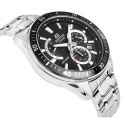 Velký standardní chronograf EDIFICE s retrograduálním ciferníkem umístěným na pozici 10 hodin. Černá luneta a ciferník vynikají výrazným dynamickým designem, který podtrhuje sportovní charakter hodinek. Jsou vybaveny funkcí data dnů v měsíci a chronografy: stopkami vteřin, minut a chronografem 24 h. Díky vodotěsnosti 10 BAR si je můžete bez obav vzít do bazénu, na trénink nebo za vodním dobrodružstvím a fluorescenční podsvícení vám umožní plnou kontrolu času i ve tmě.