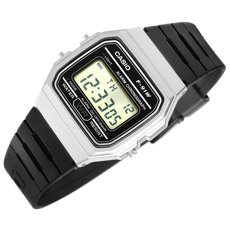 CASIO F-91W to kultowy model unisex, który dzięki swojej prostocie i niezawodności zdobył status ikony w świecie zegarków cyfrowych. Lekki jak piórko (zaledwie 21 g!), a jednocześnie niezawodny – Casio F-91W to ikona stylu i funkcjonalności, która od dekad nie wychodzi z mody. Prosty, ale genialny – czytelny wyświetlacz LCD i klasyczne podświetlenie LED sprawiają, że zawsze masz kontrolę nad czasem, niezależnie od warunków. Wbudowany stoper 1/100 sekundy to idealny towarzysz codziennych aktywności, a alarm i sygnał godzinowy pomagają trzymać się harmonogramu. Automatyczny kalendarz eliminuje problem ręcznego ustawiania daty, a wytrzymała konstrukcja i wodoodporność sprawiają, że ten zegarek sprosta każdemu wyzwaniu dnia codziennego. Minimalizm, retro vibe i niezawodność – Casio F-91W to więcej niż zegarek, to ponadczasowy symbol prostoty i funkcjonalności, który pasuje do każdego stylu!
