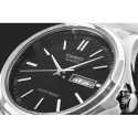 Pokud hledáte hodinky, které podtrhnou váš styl, nebudou příliš zdobné a zároveň budou spolehlivé a všestranné, tento model značky Casio je trefou do černého. Černý ciferník s jemnými stříbrnými indexy podtrhuje nadčasový design a zároveň zajišťuje čitelnost za všech podmínek. Tenké ručičky a decentně umístěná datumovka dne v týdnu a měsíce jsou praktické, ale nenápadné detaily, které z nich dělají ideální volbu pro každodenní i formálnější příležitosti. Ocelový náramek dodává hodinkám mužný nádech a zároveň zajišťuje pohodlí a odolnost, což z nich činí investici, která vydrží dlouhá léta.