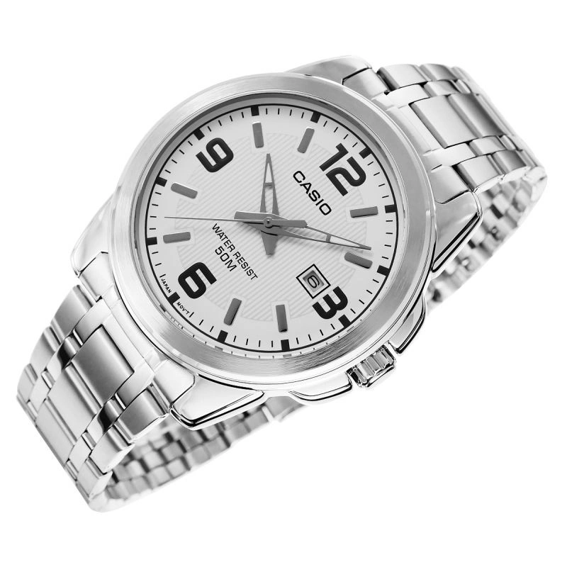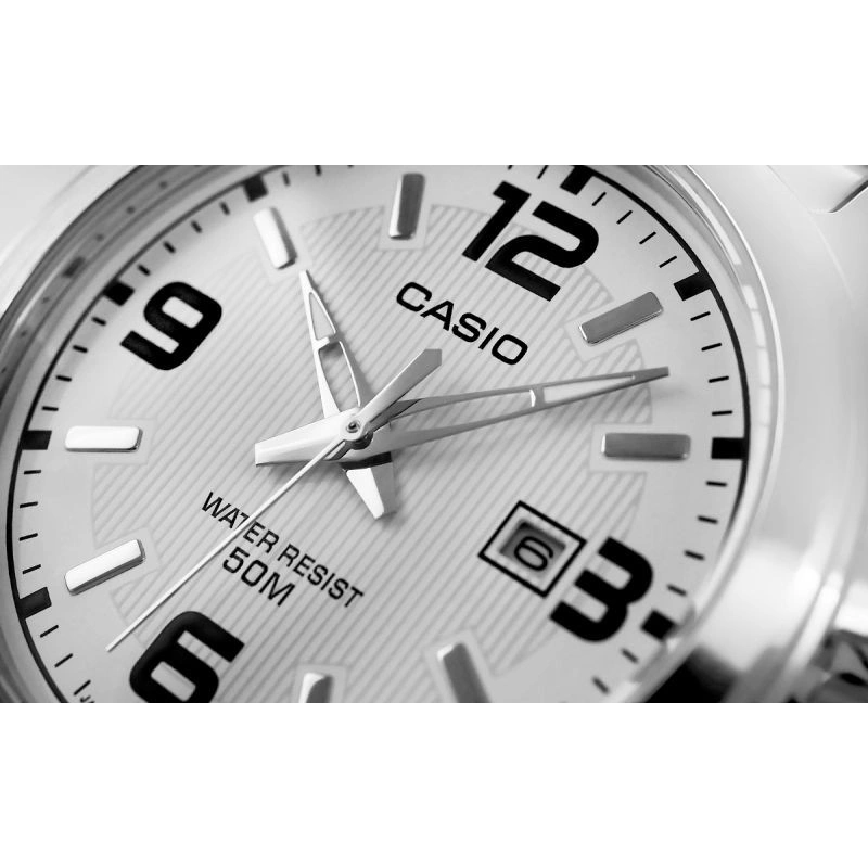 Tyto elegantní pánské hodinky kombinují klasické proporce s moderním zpracováním. světlý, stříbrnobílý ciferník s jemným vertikálním rýhováním dodává celkovému vzhledu svěží a čistý vzhled. velké tmavé arabské číslice na 12, 3, 6 a 9 hodině zaručují dokonalou čitelnost, zatímco štíhlé ručičky a indexy dokonale zapadají do estetiky moderního minimalismu. datumovka na 3 hodině je elegantním doplňkem, který nenarušuje harmonii designu. náramek a pouzdro z kvalitní nerezové oceli zajišťují odolnost a pohodlí při nošení. hodinky jsou vodotěsné do 50 metrů, takže jsou ideální volbou pro každodenní používání - do práce i po práci. hodinky Casio MTP - pro muže, kteří si cení jasných pravidel, čistého designu a spolehlivosti.