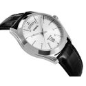 Černý ciferník zdobený přesnými stříbrnými indexy a elegantními ručičkami vyzařuje výraznou třídu, která přitahuje pozornost a podtrhuje charakter nositele. Masivní pouzdro z ušlechtilé oceli nejenže přispívá k jeho odolnosti, ale také vytváří dojem síly a mužné elegance. Aby byl vzhled kompletní, černý kožený řemínek nejenže vypadá stylově, ale také poskytuje maximální pohodlí - ať už jde o náročný den, nebo večer se společenským oblečením. Tyto hodinky vypovídají více než slova - o vašem vkusu, sebedůvěře a smyslu pro detail.