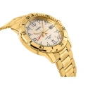 Rozhodný a elegantní model CASIO, který zaujme na první pohled. Obal o průměru 44 mm, celý ve výrazném zlatém odstínu, ukrývá jasný, jemně lesklý ciferník s výraznými indexy a výrazným červeným hrotem vteřinové ručičky. Masivní ručičky a kontrastní hodinové značky zajišťují vysokou čitelnost za všech podmínek. Díky datumovce na 3. hodině máte přehled o čase a vodotěsnost 50 M vám dává volnost pohybu - bez ohledu na počasí nebo situaci. Doplňuje je zlatý náramek s trojitým zapínáním - pohodlný, odolný a dokonale přizpůsobený dynamickému životnímu stylu. Přesný quartzový strojek zaručuje přesnost, kterou potřebujete každý den.