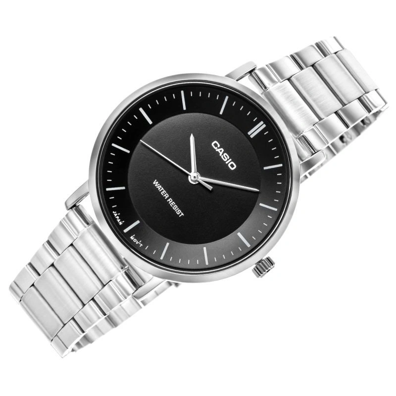 MTP-VT04D to ukłon w stronę czystego designu – bez rozpraszaczy, bez komplikacji, bez hałasu. Tylko Ty i czas – odczytywany z idealnie zbalansowanej tarczy, na której każda kreska ma sens, a każda sekunda płynie w rytmie prostoty. Brak cyfr? To nie brak – to wybór. Brak datownika? Również. Wszystko, co zbędne, zniknęło, by zostawić to, co najważniejsze. Czytelność. Równowagę. Spokój. Powierzchnia tarczy o matowej teksturze dodatkowo nadaje całości nowoczesnego, minimalistycznego charakteru. Ten zegarek dopasowuje się do Ciebie, nie odwrotnie. Idealnie odnajdzie się czy to pod mankietem marynarki, czy w towarzystwie ulubionego T-shirtu. Zegarek jest cieńki (8,5 mm) i lekki (90g), a całość wygodna i gotowa, by być z Tobą codziennie – nie dominując, ale dopełniając.