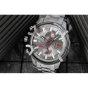 Stříbrošedý odstín s jemně kartáčovanou povrchovou úpravou vytváří základ, který zvýrazňuje sílu detailů. Výrazné červené akcenty na ručičkách a subcifernících přinášejí dynamiku a energii, jako by hodinky byly připraveny na jakoukoli akci. Vysoké indexy a prvky vystupující z povrchu ciferníku mu dodávají trojrozměrný charakter a zdůrazňují solidnost a hloubku designu. Díky luminiscenčnímu povlaku na ručičkách a indexech lze čas odečítat i při slabém osvětlení, což zvyšuje praktičnost modelu. Strojově vyrytý nápis DIESEL na boku pouzdra je detail, který vypovídá o charakteru tohoto modelu - strohý, nekompromisní, připravený splnit očekávání těch nejnáročnějších mužů.
