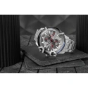 Náramek je vyroben z vynikající ušlechtilé oceli a spojuje v sobě surovou odolnost s luxusní povrchovou úpravou, která zaujme na každém kroku. Jeho robustní konstrukce je nejen zárukou spolehlivosti, ale také jistotou, že hodinky budou perfektně ležet, ať už den přinese cokoli. Vzhled dotváří precizní spona s vyraženým logem, která dodává náramku punc noblesy a jedinečnosti. Jedná se o náramek, který jedním rozhodným pohybem říká "síla" a "styl". Prestiž hodinek podtrhuje decentní logo na sponě náramku.