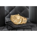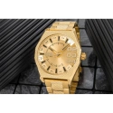 Při nošení tohoto modelu máte pocit, že čas pracuje ve váš prospěch - každá vteřina je krokem k úspěchu. Jeho zlatá geometrická forma je kombinací luxusu a nekompromisní síly. Každý prvek, od gravírovaného pouzdra až po masivní náramek, byl navržen pro muže, kteří si cení nejen elegance, ale i charakteru. Masivní zlatý ciferník fascinuje svou hloubkou, zatímco trojrozměrné číslice a výrazné indexy mu propůjčují industriální strohost. Jsou to hodinky, které nepodléhají trendům - samy je určují. Každá vteřina na jejich ciferníku připomíná, že úspěch je otázkou sebedůvěry a důslednosti. Nejsou to hodinky pro každého - jsou manifestem mužného stylu, nezlomného sebevědomí a připravenosti na výzvy, které před vámi stojí.