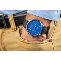 Řemínek tohoto modelu se vyznačuje jedinečnou kombinací kůže a barvy, které společně vytvářejí pohodlnou a odolnou konstrukci. Měkká kůže mu dodává elegantní, moderní vzhled a zajišťuje dokonalé přizpůsobení a odolnost vůči každodennímu nošení. Díky této kombinaci je řemínek lehký, příjemný na dotek a nezpůsobuje nepohodlí ani při dlouhodobém nošení. Černá barva dodává hodinkám univerzálnost a podtrhuje jejich mužný charakter, přičemž dokonale ladí s jejich moderním designem. Jedná se o řešení pro muže, kteří ocení nejen styl, ale také pohodlí a funkčnost v té nejlepší kvalitě.