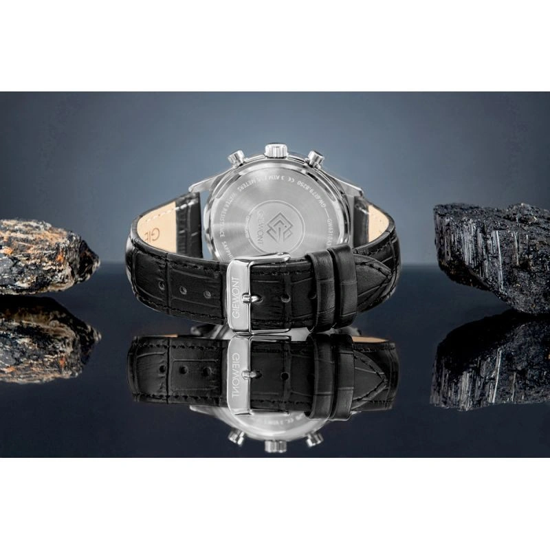 Pánské hodinkyGiewontGW6310-A3 jsoumodelem určeným pro muže, který očekává výrazný charakter, spolehlivou konstrukci a funkčnost připravenou zvládnout rytmus každodenních úkolů. Jejich ciferník s přesným rozložením dílčích ciferníků chronografu představuje dynamický, čitelný design, který zdůrazňuje moderní a lehce sportovní profil hodinek, přestože se jedná o klasiku. Každý prvek byl uspořádán s ohledem na intuitivní čtení a estetickou harmonii, takže celek působí dojmem dokonale navrženého nástroje času.