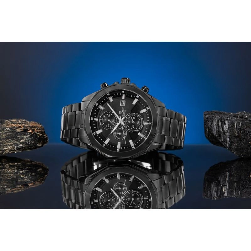 Chronograf dodává hodinkám dynamický, mužný charakter a zavádí funkčnost, kterou oceníte jak v každodenních situacích, tak při náročnějších aktivitách, což je prvek, který podtrhuje technickou nadřazenost tohoto modelu a dodává mu sportovní eleganci.