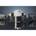 Řemínek tohoto modelu se vyznačuje jedinečnou kombinací kůže a barvy, které společně vytvářejí pohodlnou a odolnou konstrukci. Měkká kůže mu dodává elegantní, moderní vzhled a zajišťuje dokonalé padnutí a odolnost vůči každodennímu nošení. Díky této kombinaci je řemínek lehký, příjemný na dotek a nezpůsobuje nepohodlí ani při dlouhém nošení. Černá barva dodává hodinkám univerzálnost a zdůrazňuje jejich mužný charakter a dokonale ladí s jejich moderním designem. Jedná se o řešení pro muže, kteří ocení nejen styl, ale také pohodlí a funkčnost v té nejlepší kvalitě.