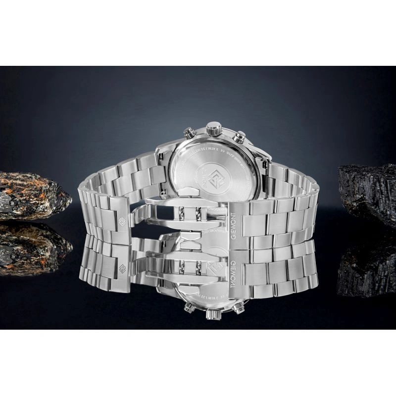 Zegarek męski Giewont GW4580-B3topropozycja dla mężczyzn ceniących nowoczesny design, precyzyjną funkcjonalność i wyrazisty charakter. Jego wielowymiarowa tarcza z subtelnymi tłoczeniami oraz subtarcze przyciągają wzrok i nadaje modelowi głębi oraz wyjątkowej elegancji. Wyraźne metaliczne indeksy i masywne wskazówki zapewniają doskonałą czytelność, a chroniące całość szkiełko szafirowe gwarantuje imponującą odporność na zarysowania i nienaganny wygląd przez lata. Solidna stalowa bransoleta z wyrazistymi ogniwami prezentuje się prestiżowo i nowocześnie, a jej ergonomiczna konstrukcja idealnie dopasowuje się do nadgarstka, zapewniając komfort oraz pewność noszenia. Chronograf dodaje zegarkowi sportowej elegancji i funkcjonalności, czyniąc go idealnym zarówno do codziennego użytkowania, jak i bardziej wymagających aktywności. Obecność datownika zwiększa praktyczność modelu, podkreślając jego użytkowy, a jednocześnie luksusowy charakter. Ten model Giewont to wy