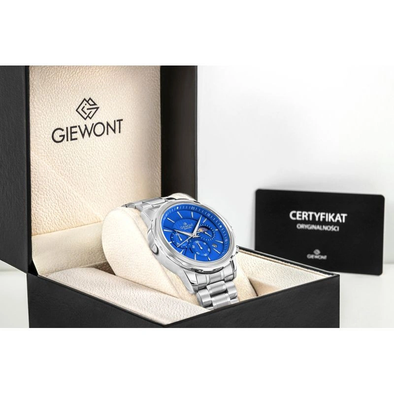 Již od prvního pohledu víte, že jde o něco výjimečného. Stylová a do detailu propracovaná krabička Giewont předznamenává třídu a kvalitu, kterou objevíte uvnitř. Minimalistický design, precizní zpracování a jedinečnost balení dokonale vystihují ducha značky. Otevřete ji - a uvnitř na vás čekají hodinky, které v sobě spojují eleganci, moderní styl a jedinečný charakter.