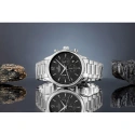 Robustní náramek, vyrobený z dokonalé ušlechtilé oceli, je prvkem, který nelze přehlédnout. Každý článek byl navržen tak, aby dokonale seděl na zápěstí a zároveň poskytoval maximální pohodlí. Přehnaný, dokonalý na dotek, rafinovaný a pevný - je jako ocelová obruč, která hodinky pevně drží na zápěstí a připomíná jejich stabilitu. Každý článek je pečlivě zpracován, díky čemuž se hodinky dokonale hodí pro každodenní i formální styl. Precizně provedená spona doplňuje tento silný, mužný charakter hodinek.
