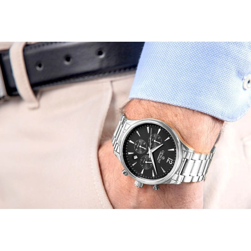 Pánské hodinkyGiewontGW6310-B2 jsoumodelem určeným pro muže, kteří očekávají výrazný charakter, spolehlivou konstrukci a funkčnost připravenou zvládnout rytmus každodenních úkolů. Jejich ciferník s přesným rozložením dílčích ciferníků chronografu představuje dynamický, čitelný design, který zdůrazňuje moderní a lehce sportovní profil hodinek, přestože se jedná o klasiku. Každý prvek byl uspořádán pro intuitivní čtení a estetickou harmonii, což vytváří dojem dokonale navrženého nástroje času.