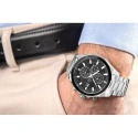 Robustní náramek je vyroben z dokonale zpracované ušlechtilé oceli a je prvkem, který nelze přehlédnout. Každý článek byl navržen tak, aby dokonale seděl na zápěstí a zároveň zajišťoval maximální pohodlí. Přehnaný, dokonalý na dotek, rafinovaný a pevný - je jako ocelová obruč, která hodinky pevně drží na zápěstí a připomíná jejich stabilitu. Každý článek je pečlivě zpracován, díky čemuž se hodinky dokonale hodí ke každodennímu i formálnímu oblečení. Precizně zpracovaná spona dotváří tento silný, mužný charakter hodinek.