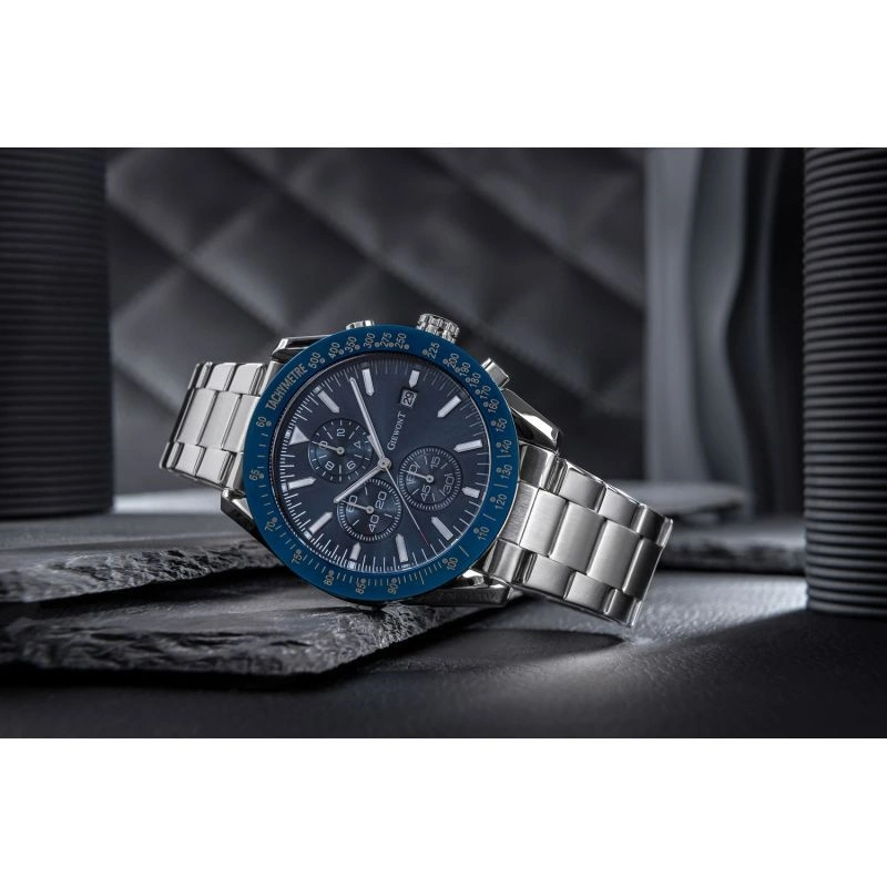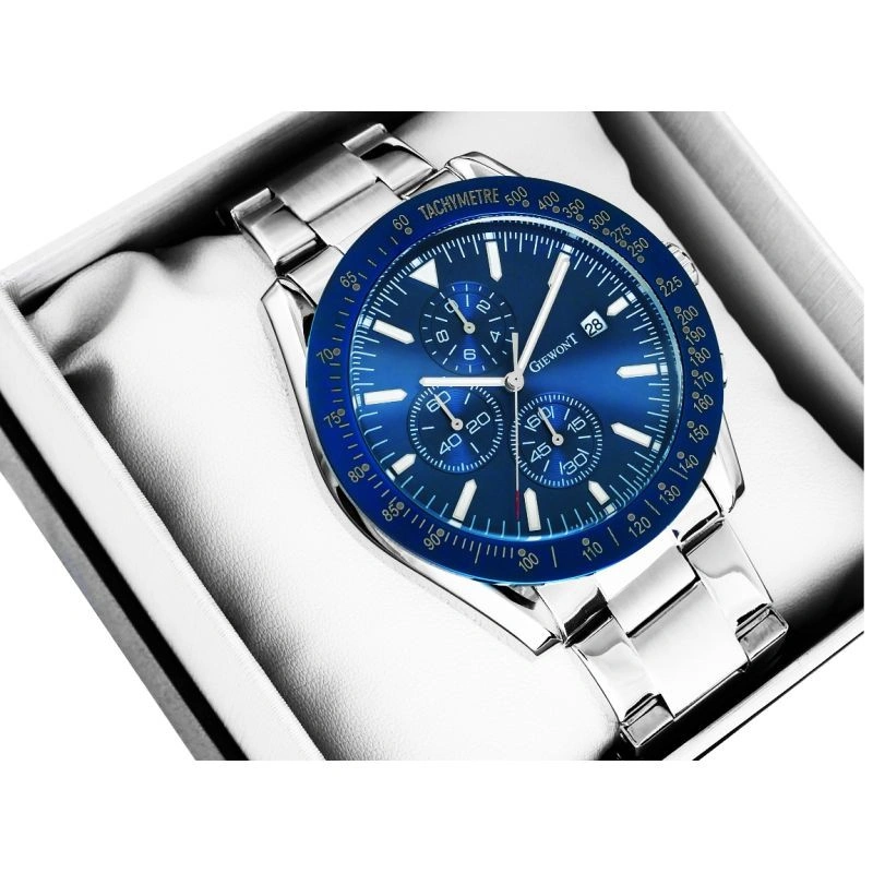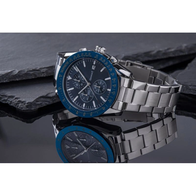 Komfortní ocelový náramek je vynikajícím doplňkem těchto hodinek. Typ náramku je zárukou pevnosti a pohodlí při každodenním používání. Komfort dotváří odpovídající kvalita oceli, která se pohodlně přizpůsobí mužskému zápěstí. Zapínání je signováno logem značky Giewont, což zvyšuje prestiž hodinek a zajišťuje jedinečnost mezi ostatními značkami hodinek.