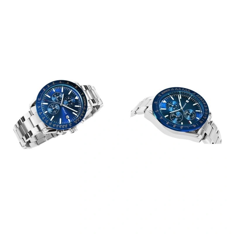 Ciferník: Analogový s vteřinovou ručičkou chronografu, minutovou ručičkou stopek, 24hodinovým časovým režimem a ručičkou data dne v měsíci
