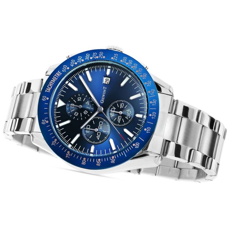 Pánské hodinky Giewont GW8620-2 jsou vybaveny stopkami s chronografem vteřin, stopkami minut, 24hodinovým časovým režimem a datem dne v měsíci.