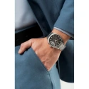 Náramek je vyroben z nejkvalitnější ušlechtilé oceli a kombinuje nezlomnou odolnost s luxusní povrchovou úpravou, která zaujme na první pohled. Jeho silná, robustní konstrukce zaručuje spolehlivost a jistotu, že hodinky budou perfektně ležet, ať už je váš den jakkoli náročný. Precizně provedená spona s vyraženým logem doplňuje tento silný, mužný charakter a dodává mu nádech elegance a prestiže. Vícestupňový mechanismus zapínání zabraňuje náhodnému rozepnutí hodinek.