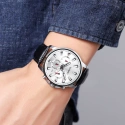 Díky klasickému designu, robustnímu ocelovému pouzdru a výraznému černému ciferníku se hodinky skvěle hodí k pánským outfitům - od každodenních ležérních až po formální večerní sety. Jsou to hodinky, které se budou hodit na důležité schůzky, pracovní večeře, ale i na každodenní nošení, kdy dodají styl každému jednoduchému kompletu. Ciferník má tři subciferníky, které mu dodávají sportovní, moderní nádech a zároveň plní pomocné funkce - včetně stopek. Mezi 4. a 5. hodinou se nachází datumovka, která decentně splývá s designem ciferníku, aniž by narušovala jeho čitelnost. Celek doplňuje precizně vyrobené ocelové pouzdro, které hodinkám dodává výrazný a mužný vzhled.