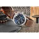 Styl šedesátých let s moderním nádechem - design ciferníku je inspirován vzhledem kokpitu klasického automobilu, který je patrný v každém detailu. Tmavě modré pozadí s povrchovou úpravou slunečním paprskem a hlouběji umístěné subciferníky dodávají kompozici prostornost a eleganci. Indexy na 3., 9. a 12. hodině tvoří vyvážené tříbodové uspořádání, které nejen upoutá pozornost, ale také usnadňuje rychlé čtení - to vše v duchu stylového retra.