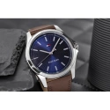 Kovově stříbrná barva obálky a tmavě modrý ciferník vytvářejí harmonický základ zvýrazněný logy, která celku dodávají jemnou dynamiku. Tmavě modrá barva přitahuje pozornost, vnáší do hodinek vážnost a dodává jim jedinečný charakter. Stříbrný náramek celek dokonale doplňuje a činí z tohoto modelu ideální volbu pro muže, kteří hledají nepřehlédnutelný, ale elegantní doplněk pro každou příležitost.