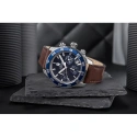 Hodinky, které vynikají originálním designem a výraznou strukturou tmavě modrého ciferníku, která mu dodává hloubku a charakter. Detaily, jako jsou čitelné číslice, elegantní stříbrné ručičky a červený akcent vteřinové ručičky, podtrhují moderní styl tohoto modelu. Funkčnost hodinek zaujme díky decentně integrovaným subciferníkům zobrazujícím čas v různých formátech a celek doplňuje klasický stříbrný náramek, který dodává univerzální eleganci. Tento model je dokonalou kombinací výjimečného designu a praktičnosti, ideální pro moderního muže.