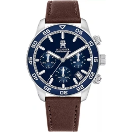 Hodinky Tommy Hilfiger TH85 Chronograph 1792163 jsou hodinky, které kombinují eleganci s funkčností a jsou ideální pro moderního muže. Tmavě modrý ciferník s jemnými zlatými detaily působí klasickým a zároveň dynamickým dojmem. Hodinky jsou vybaveny datumovkou a funkcí chronografu a kombinují estetiku s praktičností pro každodenní potřeby. Stříbrné pouzdro z ušlechtilé oceli v kombinaci s tmavě modrým rámečkem vytváří soudržný celek, zatímco minerální sklíčko chrání ciferník před poškrábáním. Hnědý kožený řemínek poskytuje nejen pohodlí, ale také dodává hodinkám elegantní vzhled, zatímco šroubovací zadní kryt poskytuje dodatečnou ochranu a díky vodotěsnosti 50 m je model odolný vůči každodennímu postříkání. Jedná se o ideální volbu pro muže, kteří ocení klasický styl v kombinaci s moderními funkcemi.