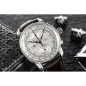 Tento speciální model ke 100. výročí založení je podtržen pamětní rytinou na zadní straně pouzdra. S jemně lesklým stříbrným pouzdrem dokonale ladí kovový ciferník v barvě šampaňského, který vyzařuje vřelost a sofistikovanost. Černé indexy a číslice v kombinaci s černými ručičkami a vteřinovou ručičkou zajišťují vynikající čitelnost a klasický vzhled. Řemínek v barvě tmavé čokolády, prošitý bílou nití, podtrhuje řemeslné zpracování a dodává nádech tradice. Stříbrná spona a krajka dotvářejí kompozici a vytvářejí konzistentní, elegantní hodinky, které kombinují funkčnost a nezaměnitelný styl.