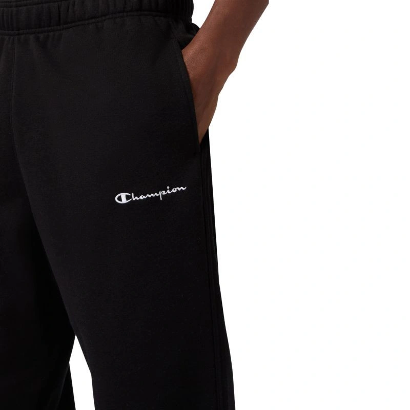 Pánské kalhoty Champion Straight Hem Pants black 221801 KK001 Pánské kalhoty Champion pro každodenní nošení. Malé logo. Odvětraný a odolný materiál. Elastický pas. Standardní střih s rovnými nohavicemi bez žebrování. Otevřené boční kapsy. Materiál: 70 % bavlna, 30 % polyester.