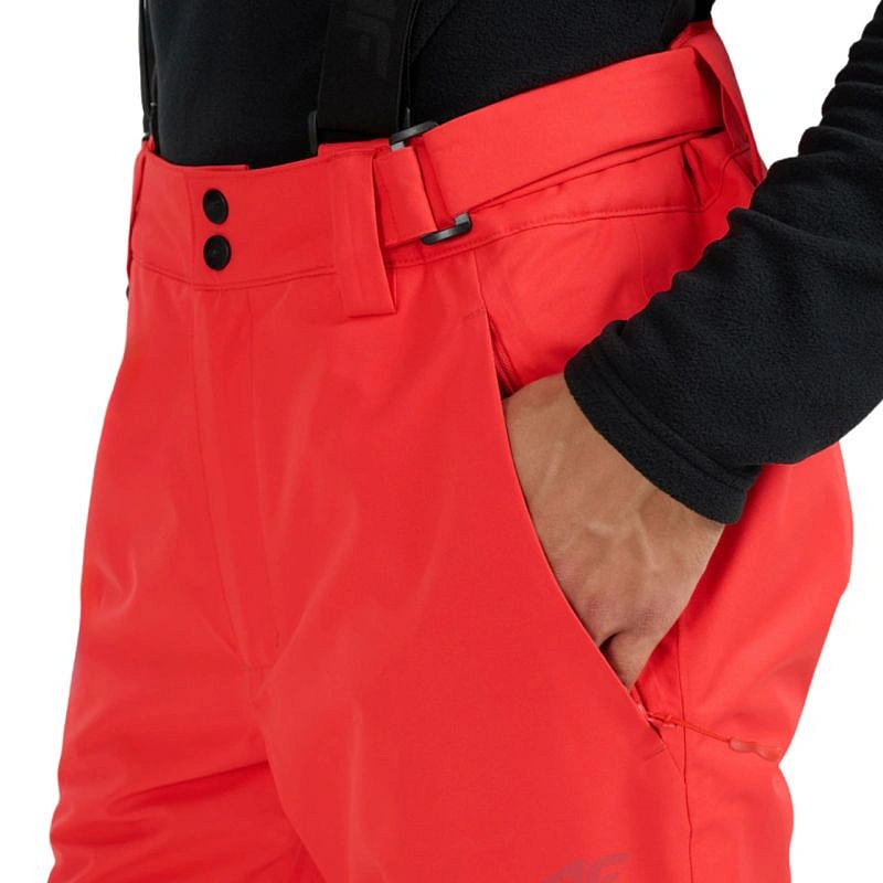 Spodnie narciarskie męskie 4F FNK M1155 czerwone 4FWAW25TFTRM1155 62S Spodnie narciarskie męskie 4F sprawdzą się w zmiennych warunkach pogodowych zapewniając pełną swobodę ruchów. Dane techniczne:· Materiał główny: 100% poliester· Materiał dodatkowy: 100% poliester· Podszewka: 100% poliester· Wypełnienie: 100% poliester (ocieplina poliestrowa)· Poziom wodoodporności membrany: 5 000 mm· Poziom oddychalności membrany: 3 000 g· Membrana 4F NeoDry 5000/3000 - zapewnia wodoodporność i oddychalność, chroniąc przed lekkim deszczem i śniegiem· Hydrofobowa impregnacja - zabezpiecza materiał przed wchłanianiem wilgoci· Klejone szwy całkowite - chronią przed przedostawaniem się wilgoci do wnętrza· Ocieplina poliestrowa - zapewnia optymalny komfort cieplny bez nadmiernego obciążenia· Zapinany, regulowany pas - łączy zapięcie na zamek, rzep i napy oraz regulację na rzepy dla wygodnego dopasowania· Odpinane, regulowane szelki - pozwalają na indywidualne dopasowanie i możliwo