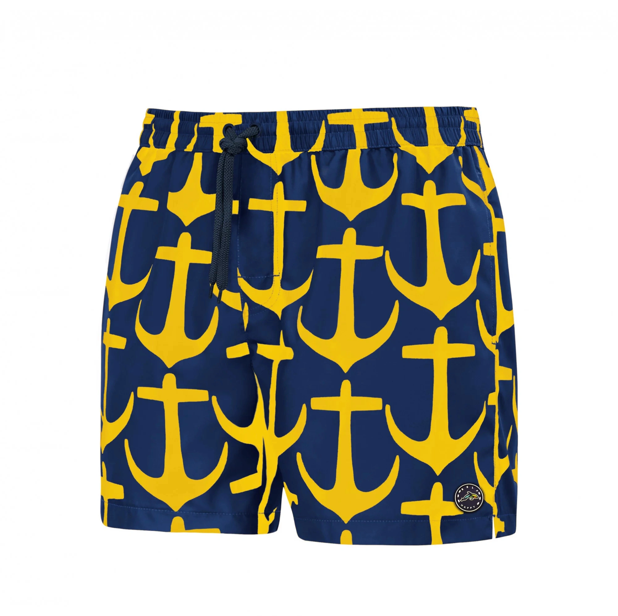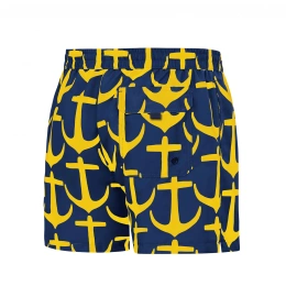 Pánské koupací šortky z tenké, vzorované látky - jejich výhodou je kratší doba schnutí. Model je ideální pro plážové a mořské koupání. V pase je pohodlná široká guma a šňůrka, která vám umožní zavázat a upravit plavky na správnou velikost. Pohodlné kapsy na bocích, vzadu kapsa s klopou zapínaná na suchý zip. Uvnitř slipy ze vzdušné síťoviny.