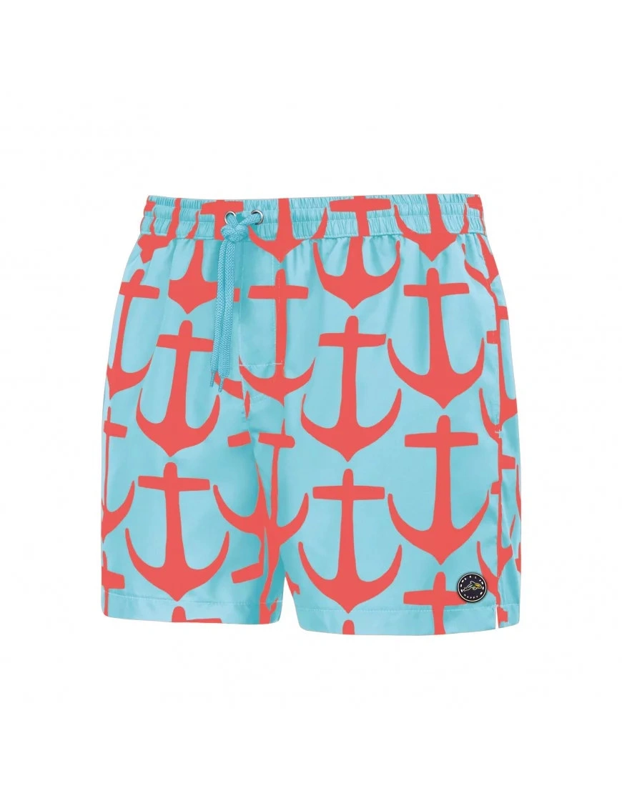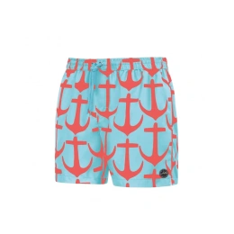 Pánské koupací šortky z tenké, vzorované látky - jejich výhodou je kratší doba schnutí. Model je ideální pro plážové a mořské koupání. V pase je pohodlná široká guma a šňůrka, která vám umožní zavázat a upravit plavky na správnou velikost. Pohodlné kapsy na bocích, vzadu kapsa s klopou zapínaná na suchý zip. Uvnitř slipy ze vzdušné síťoviny.