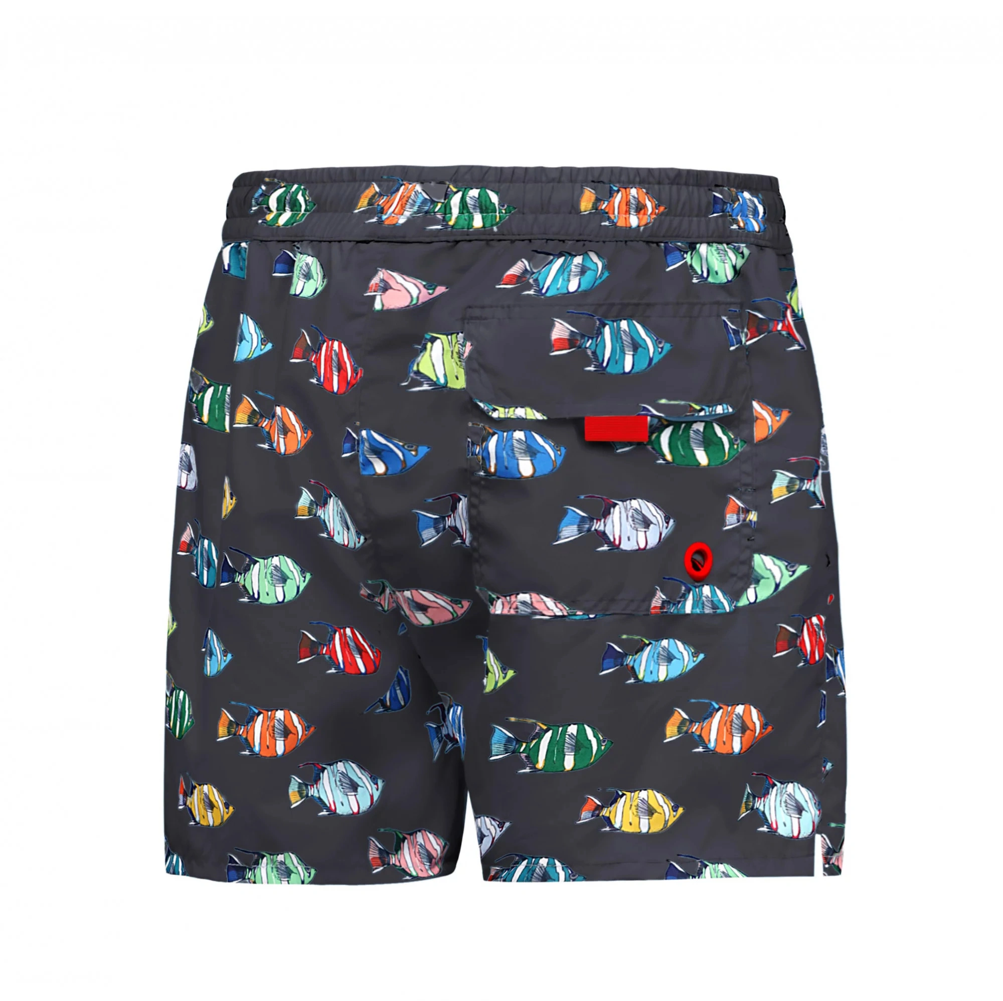 Pánské koupací šortky z tenké, vzorované látky - jejich výhodou je kratší doba schnutí. Model je ideální pro plážové a mořské koupání. V pase je pohodlná široká guma a šňůrka, která vám umožní zavázat a upravit plavky na správnou velikost. Pohodlné kapsy na bocích, vzadu kapsa s klopou zapínaná na suchý zip. Uvnitř slipy ze vzdušné síťoviny.