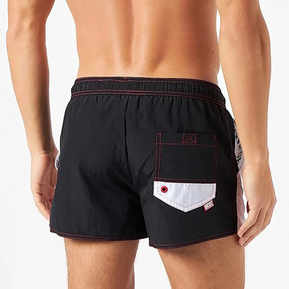 Plavky značky Diesel jsou vyrobeny z rychleschnoucího materiálu, který zajišťuje pohodlný střih a maximální komfort při nošení. Díky zadním a bočním kapsám máte vždy po ruce dostatek úložného prostoru pro drobnosti. Plavky jsou na zavazování a mají logo značky Diesel umístěné na levé nohavici.