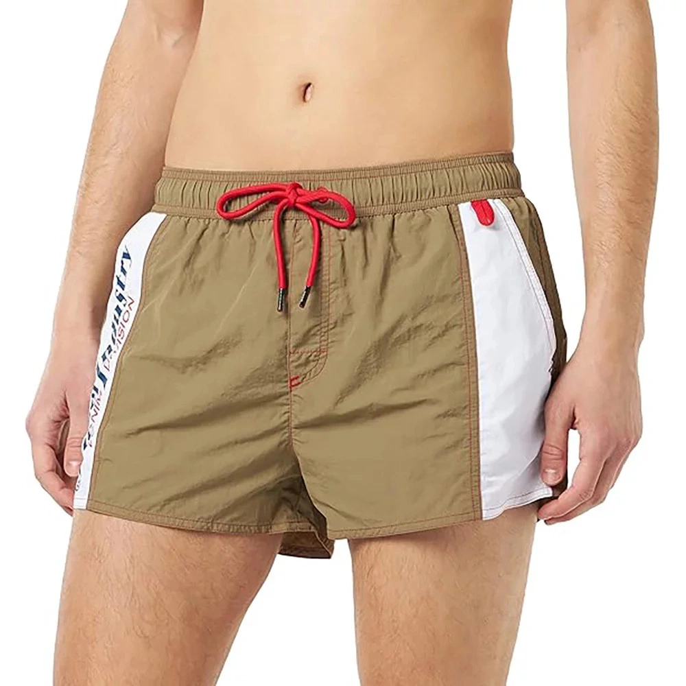 Plavky značky Diesel jsou vyrobeny z rychleschnoucího materiálu, který zajišťuje pohodlný střih a maximální komfort při nošení. Díky zadním a bočním kapsám máte vždy po ruce dostatek úložného prostoru pro drobnosti. Plavky jsou na zavazování a mají logo značky Diesel umístěné na levé nohavici.