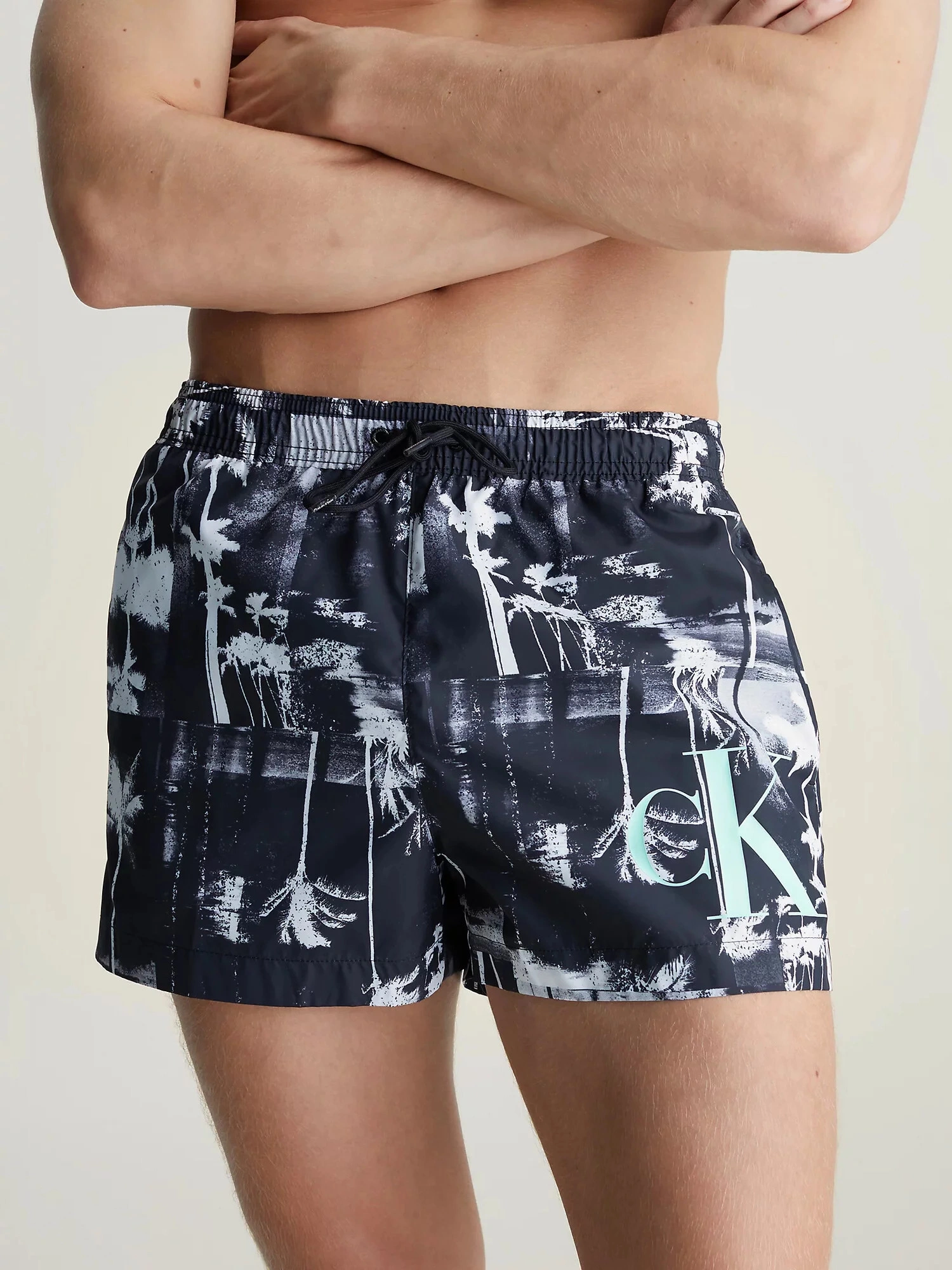 Popis Pánské plavky KM0KM00968 0GL černobílé s palmami - Calvin Klein